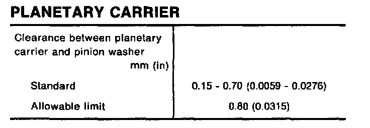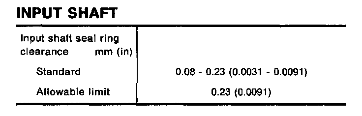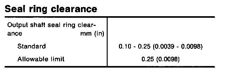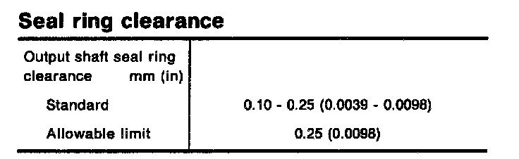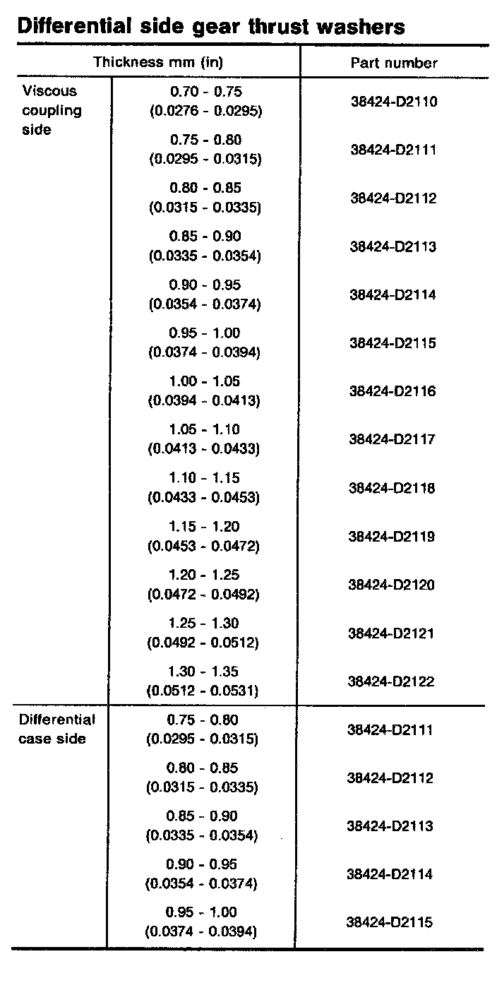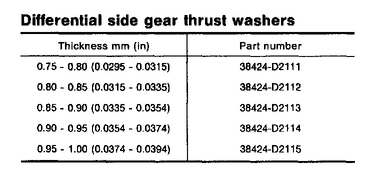 Clearance between side gear and differential case with washer mm (in) 0.1 - 0.2 (0.004 - 0.008)