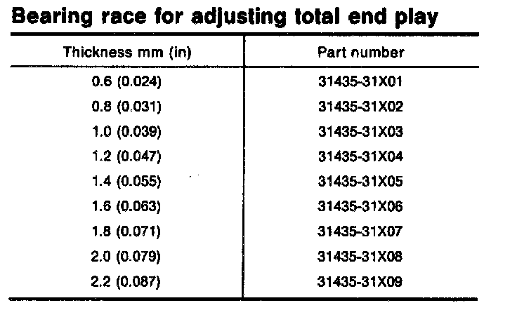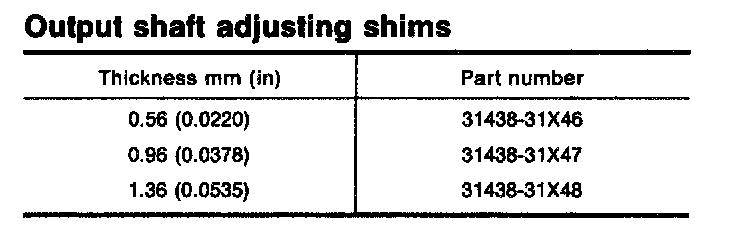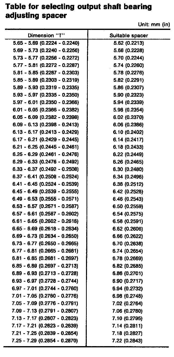 Table For Selecting Output Shaft Bearing Adjusting Spacer