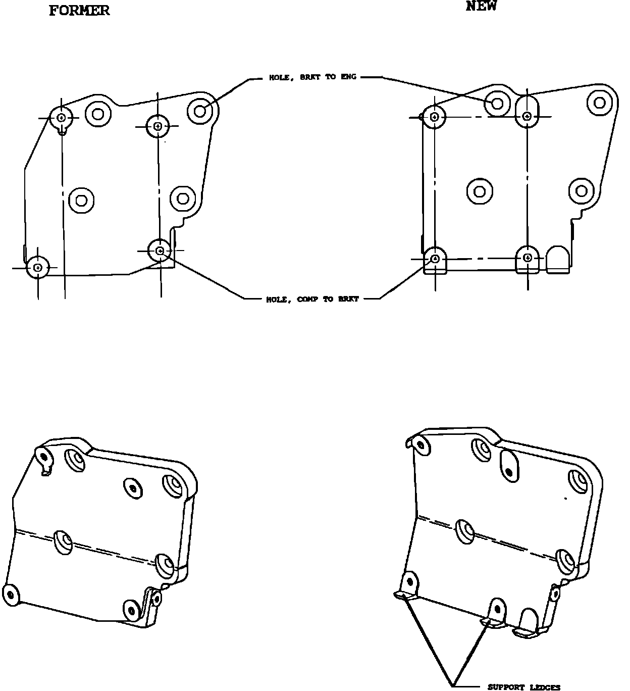 Interchanging of the compressor, bracket, and hoses is impossible as individual component parts are not interchangeable. Interchangeability as a parts set is not recommended, as future serviceability could be complicated on port and dealer A/C installed vehicles (all factory A/C vehicles will have, and parts catalog will show, "new" configuration).