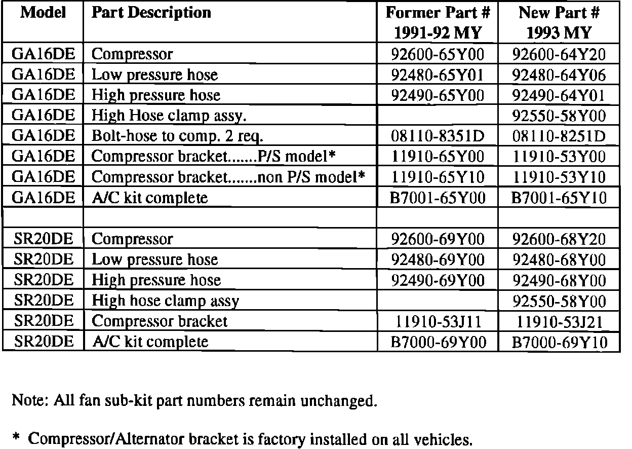 The compressor, bracket, and hose changes are effective with 1993 model vehicles, for both factory and dealer installed A/C.