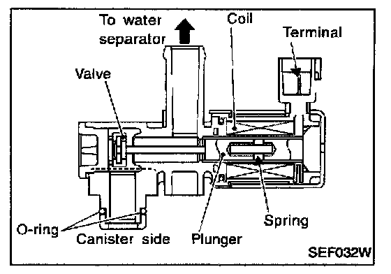 A plunger will then move to seal the canister vent. The ability to seal the vent is necessary for the on board diagnosis of other evaporative emission control system components.