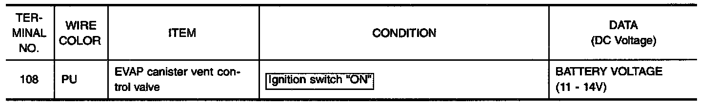 NOTE: If "DIAGNOSTIC TROUBLE CODE CONFIRMATION PROCEDURE" has been previously conducted, always turn ignition switch "OFF" and wait at least 5 seconds before conducting the next test.