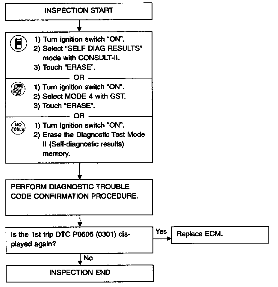 NOTE: If "DIAGNOSTIC TROUBLE CODE CONFIRMATION PROCEDURE" has been previously conducted, always turn ignition switch "OFF" and wait at least 5 seconds before conducting the next test.