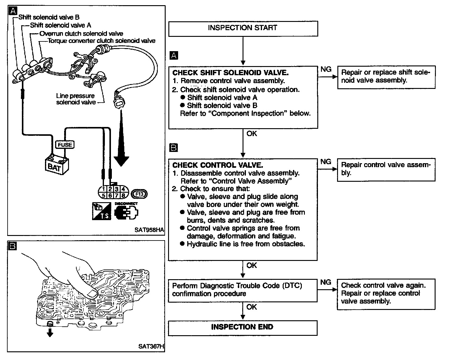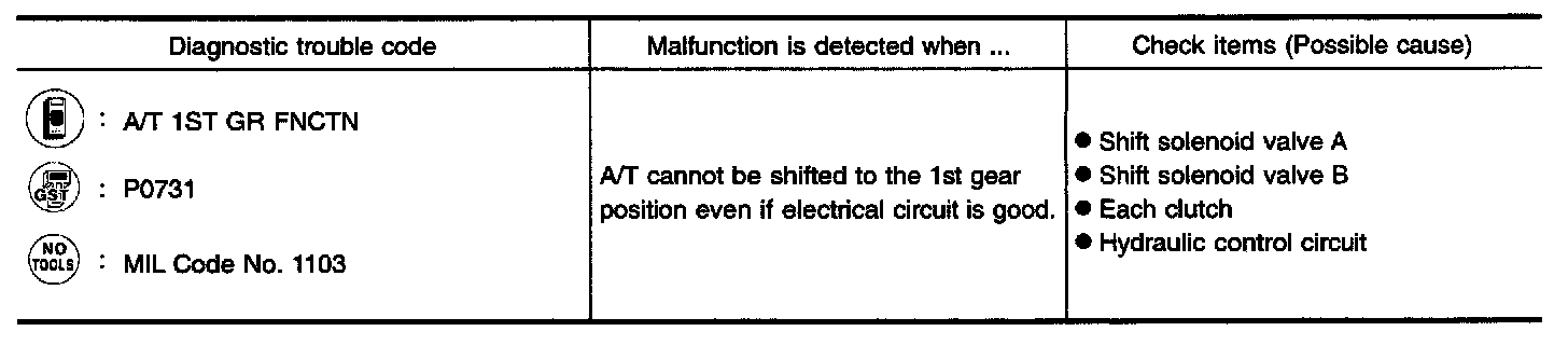 - This malfunction is detected when the A/T does not shift into first gear position as instructed by the TCM. This is not caused by electrical malfunction (circuits open or shorted) but by mechanical malfunction such as control valve sticking, improper solenoid valve operation, etc.