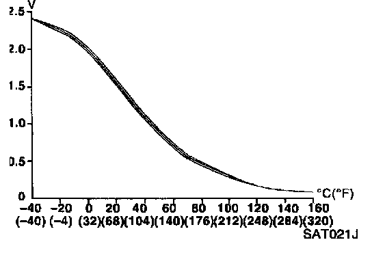 2) Make sure that output voltage of A/T fluid temperature sensor is within the range below.
