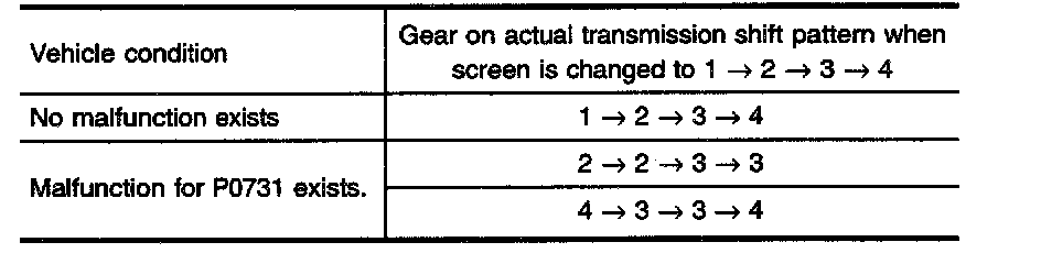 - If "TESTING" does not appear on CONSULT-II for a long time, select "SELF-DIAGNOSIS" for "ENGINE". In case a 1st trip DTC other than P0731 is shown, refer to applicable "TROUBLE DIAGNOSIS FOR DTC".