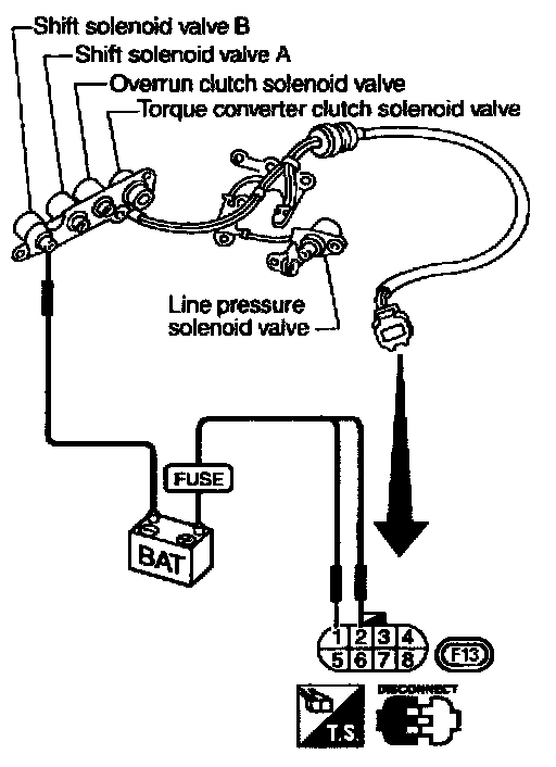 - Check solenoid valve by listening for its operating sound while applying battery voltage to the terminal and ground.