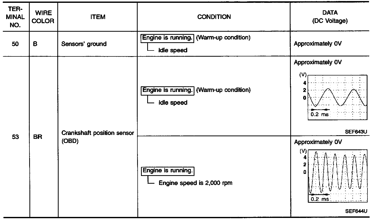 Specification data are reference values and are measured between each terminal and (43) (ECM ground).
