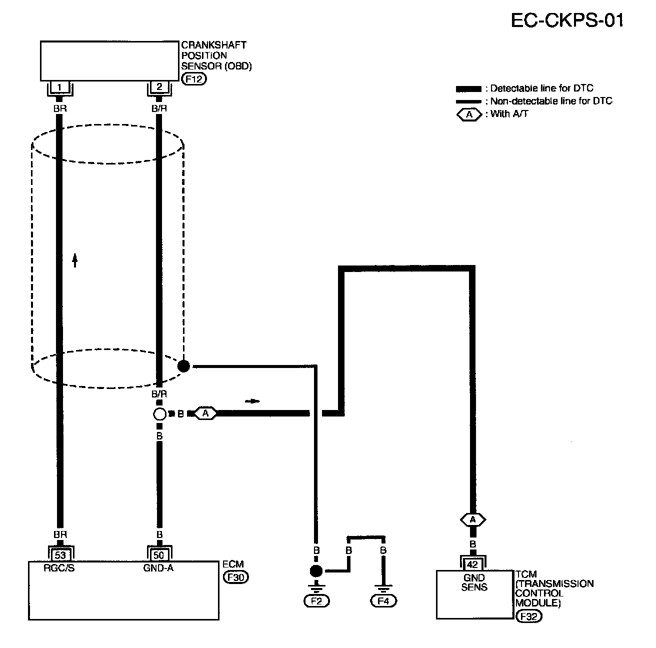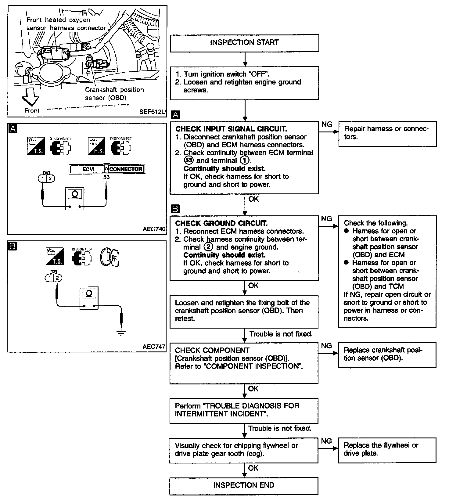 1. Disconnect crankshaft position sensor (OBD) harness connector.