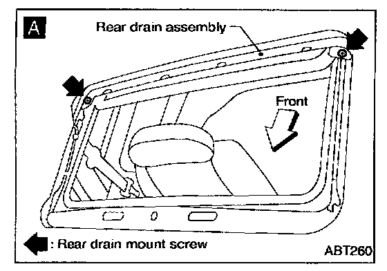A. Remove rear drain mount screws. Disengage rear drain assembly by moving it forward. Remove rear drain assembly.