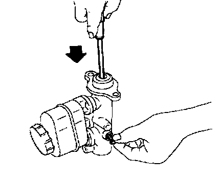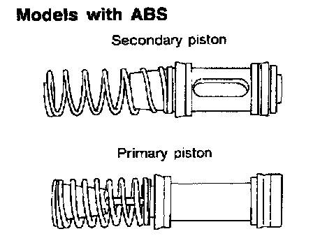 2. Remove valve stopper while piston is pushed into cylinder (Models with ABS only).