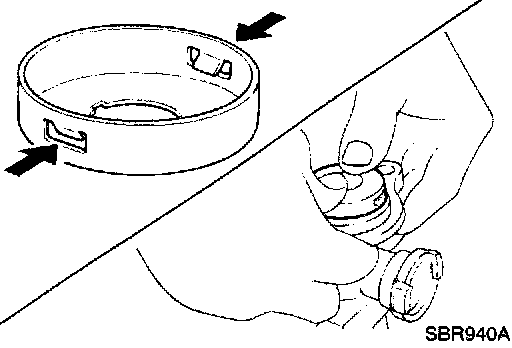 ^ If it is difficult to remove secondary piston assembly, gradually apply compressed air through fluid outlet.