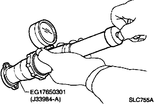 To check for leakage, apply pressure to the cooling system with a tester.