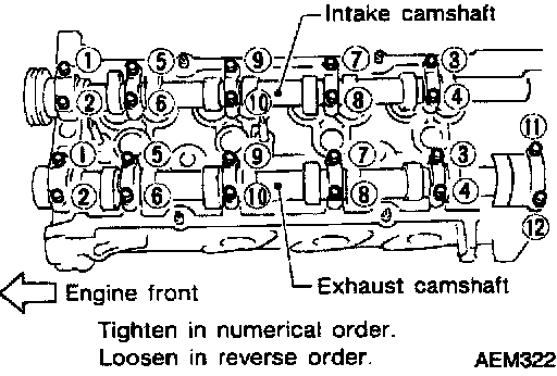 2. Install camshafts and camshaft brackets in the order shown using the following procedure.