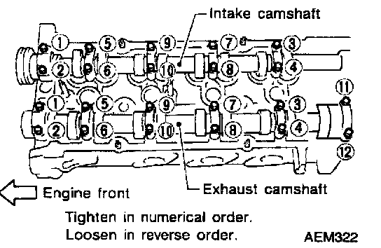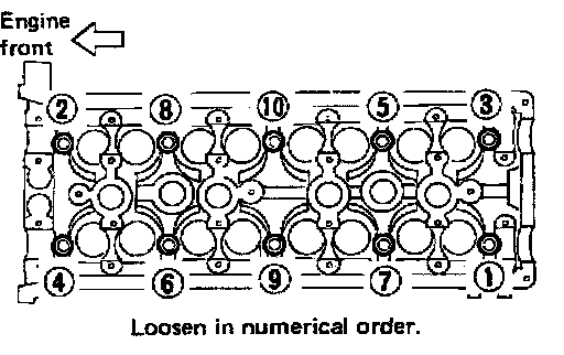 ^ Loosen cylinder head bolts in two or three steps.