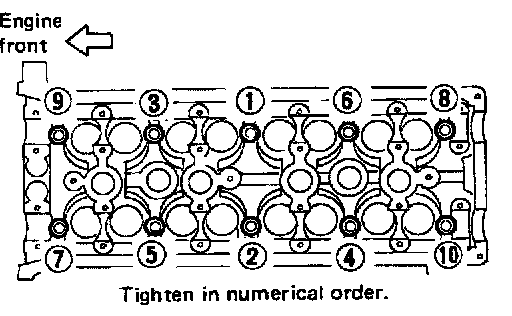 1. Tighten cylinder head bolts in numerical order using the following procedure:
