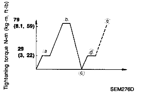 b. Tighten all bolts to 79 Nm (8.1 kg-m, 59 ft. lbs.).