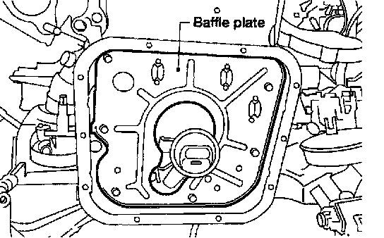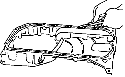 1. Use a scraper to remove old liquid gasket from mating surface of aluminum oil pan.