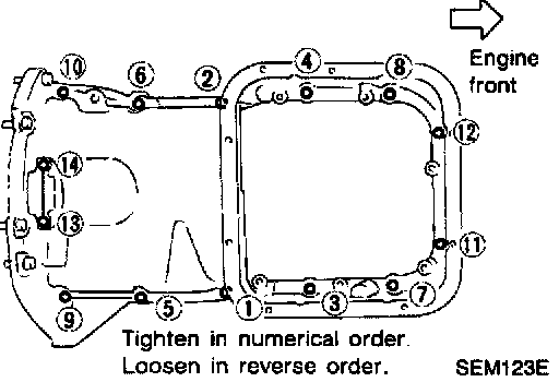3. Remove steel oil pan bolts.