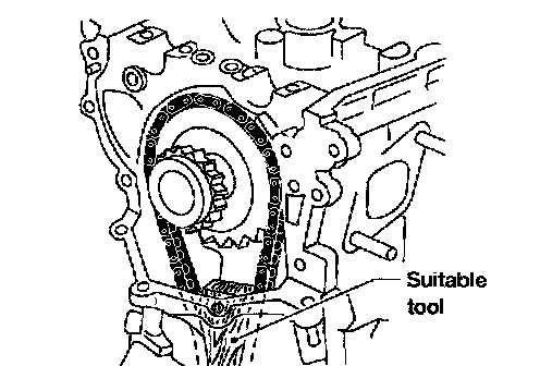 2. Support lower timing chain by using a suitable tool to avoid chain tensioner spring from coming out.