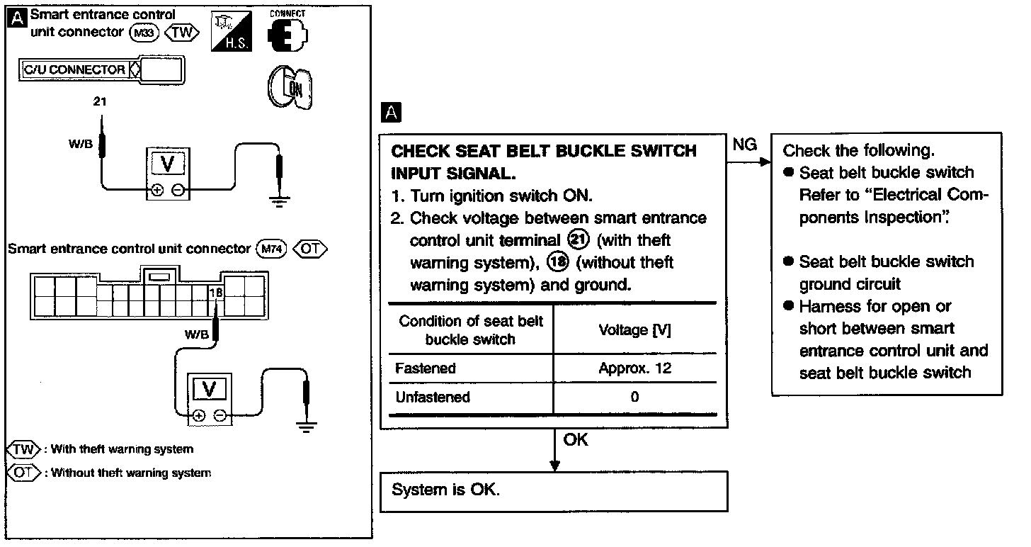 Seat Belt Buckle Switch Input Signal Check /With Power Door Locks: