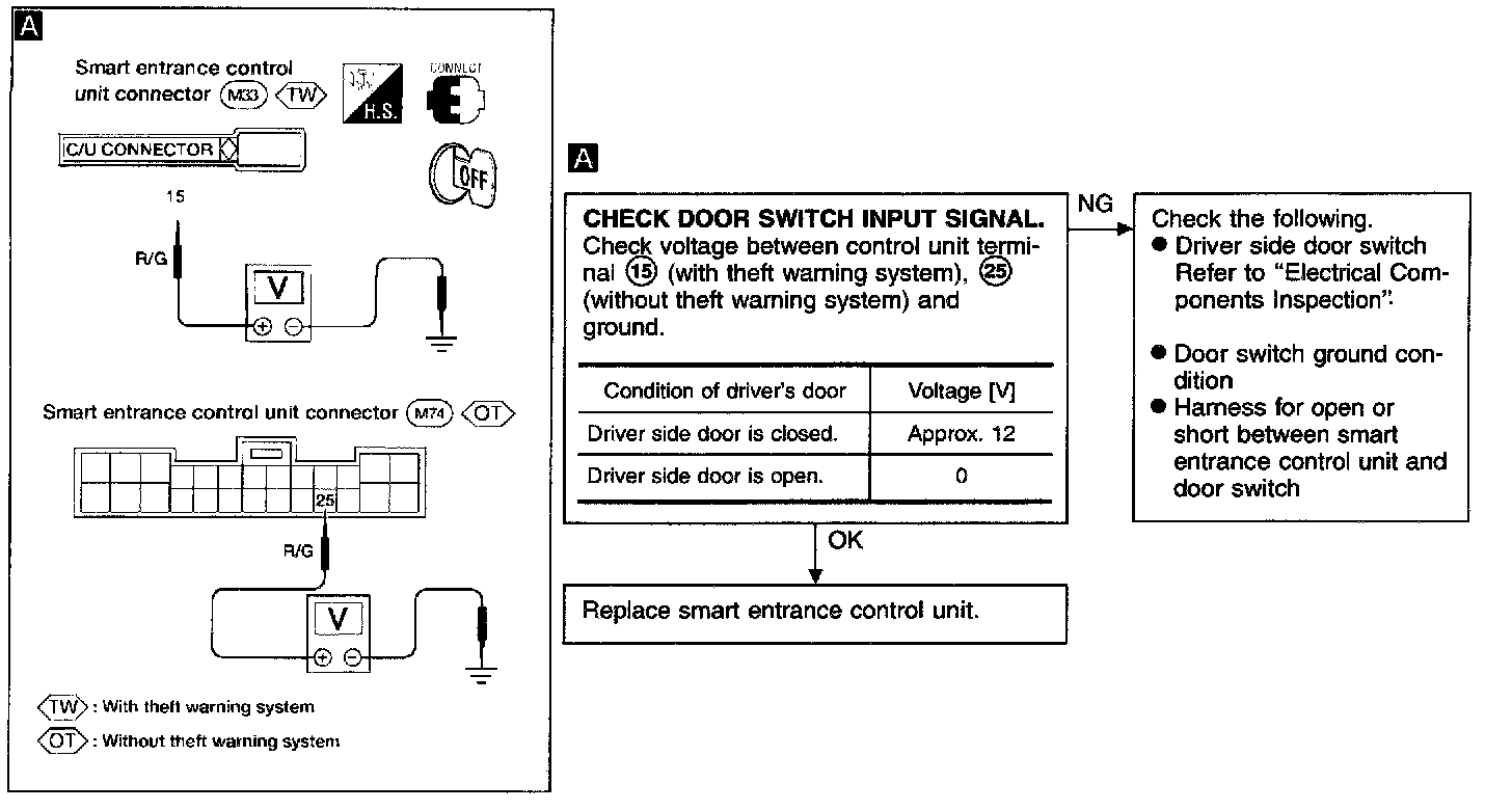 Driver Side Door Switch Input Signal Check / With Power Door Locks: