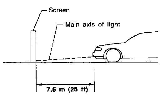 1. Set the distance between the screen and the center of the fog lamp lens as shown at left.