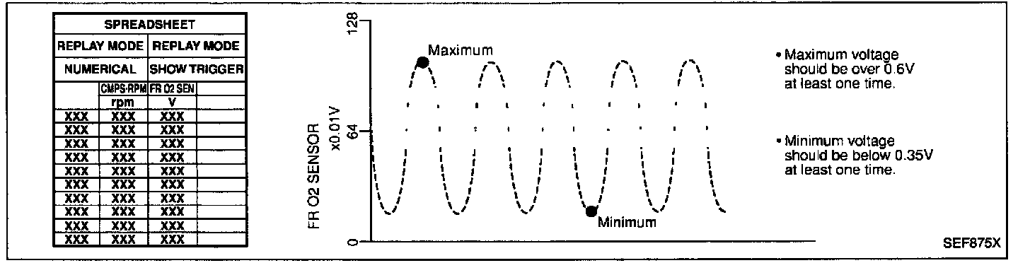 - "FR O2 SENSOR" voltage goes above 0.6V at least once.