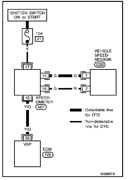 - A line with less weight (thinner line) represents a "non-detectable line for DTC". A "non-detectable line for DTC" is a circuit in which ECM cannot detect its malfunctions with the on board diagnostic system.