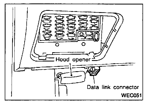 2. Connect "CONSULT-II" to data link connector which is located behind the fuse box cover.