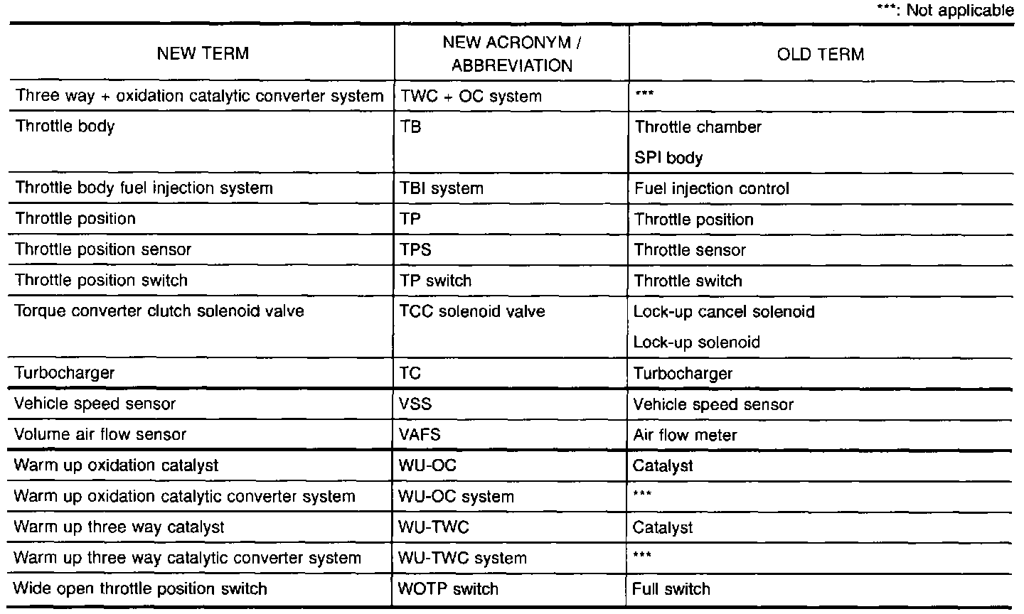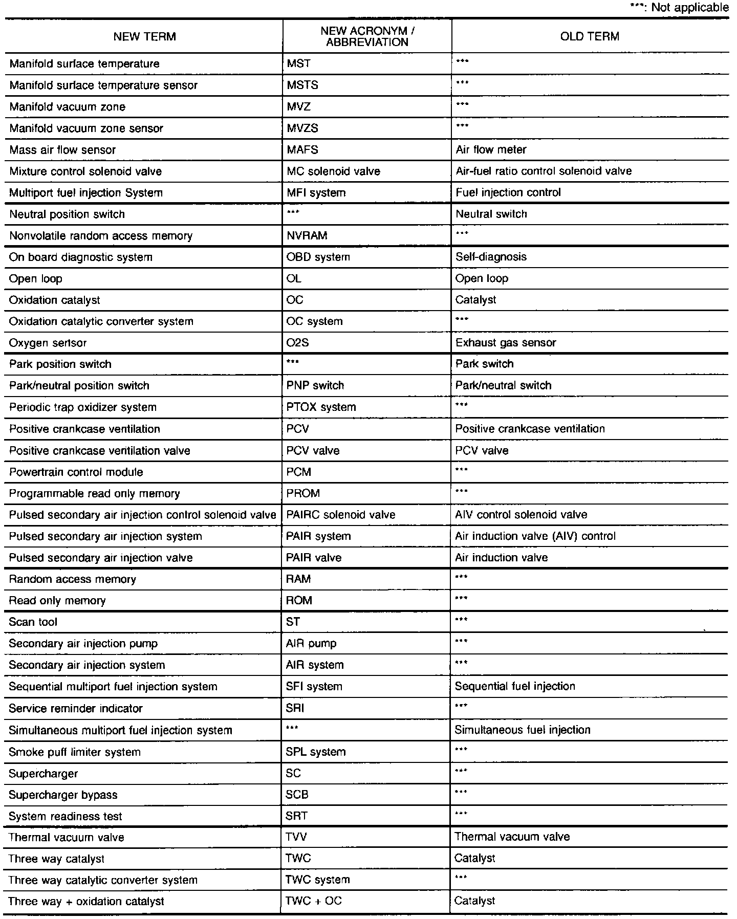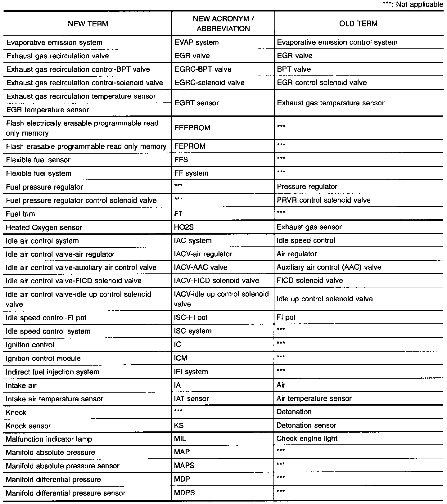 All emission related terms used are in accordance with SAE J 1930 are listed. Accordingly, new terms, new acronyms/abbreviations and old terms are listed in the images.