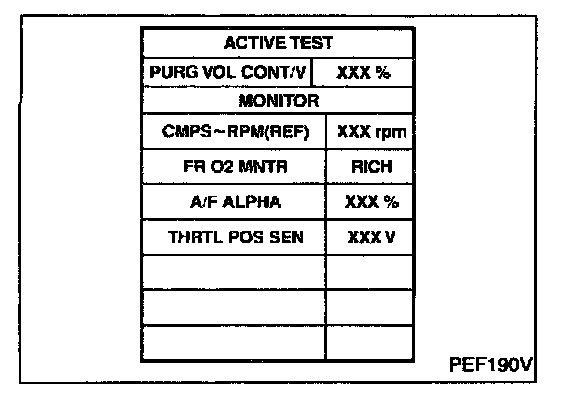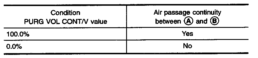 2. Perform "PURG VOL CONT/V" in "ACTIVE TEST" mode with CONSULT-II. Check that engine speed varies according to the valve opening.