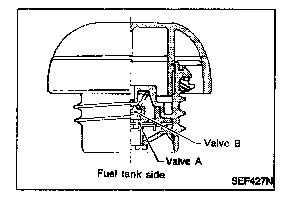 FUEL TANK VACUUM RELIEF VALVE (Built into fuel filler cap)