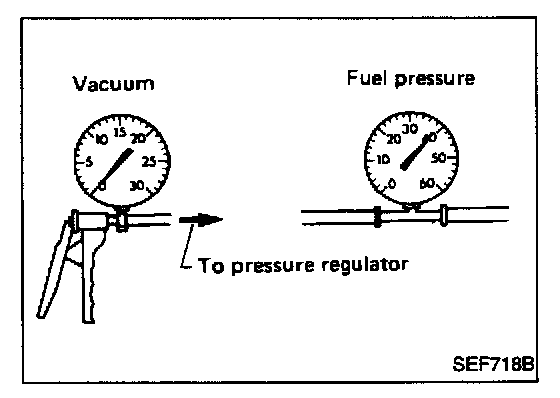 4. Start engine and read indication of fuel pressure gauge as vacuum is changed.