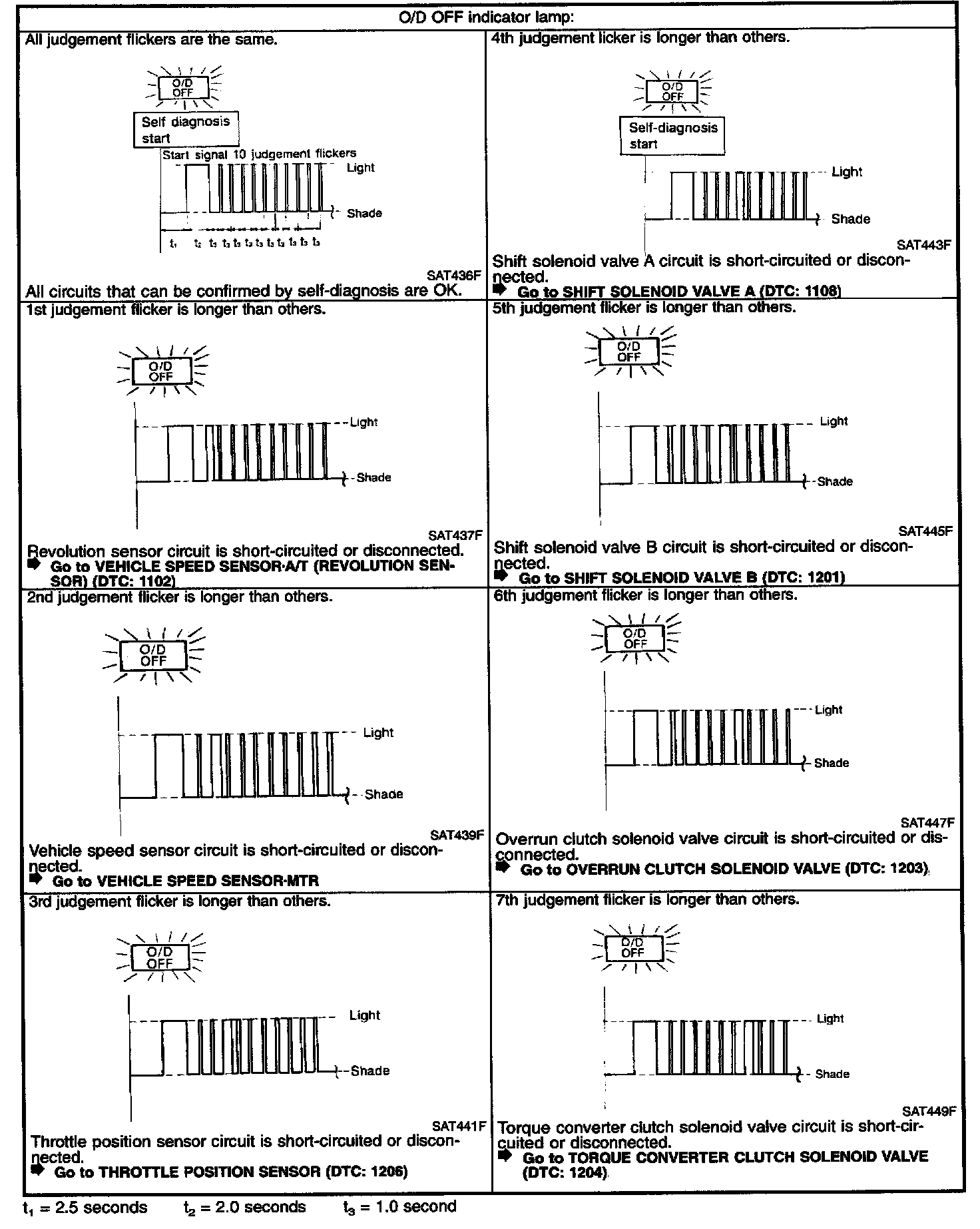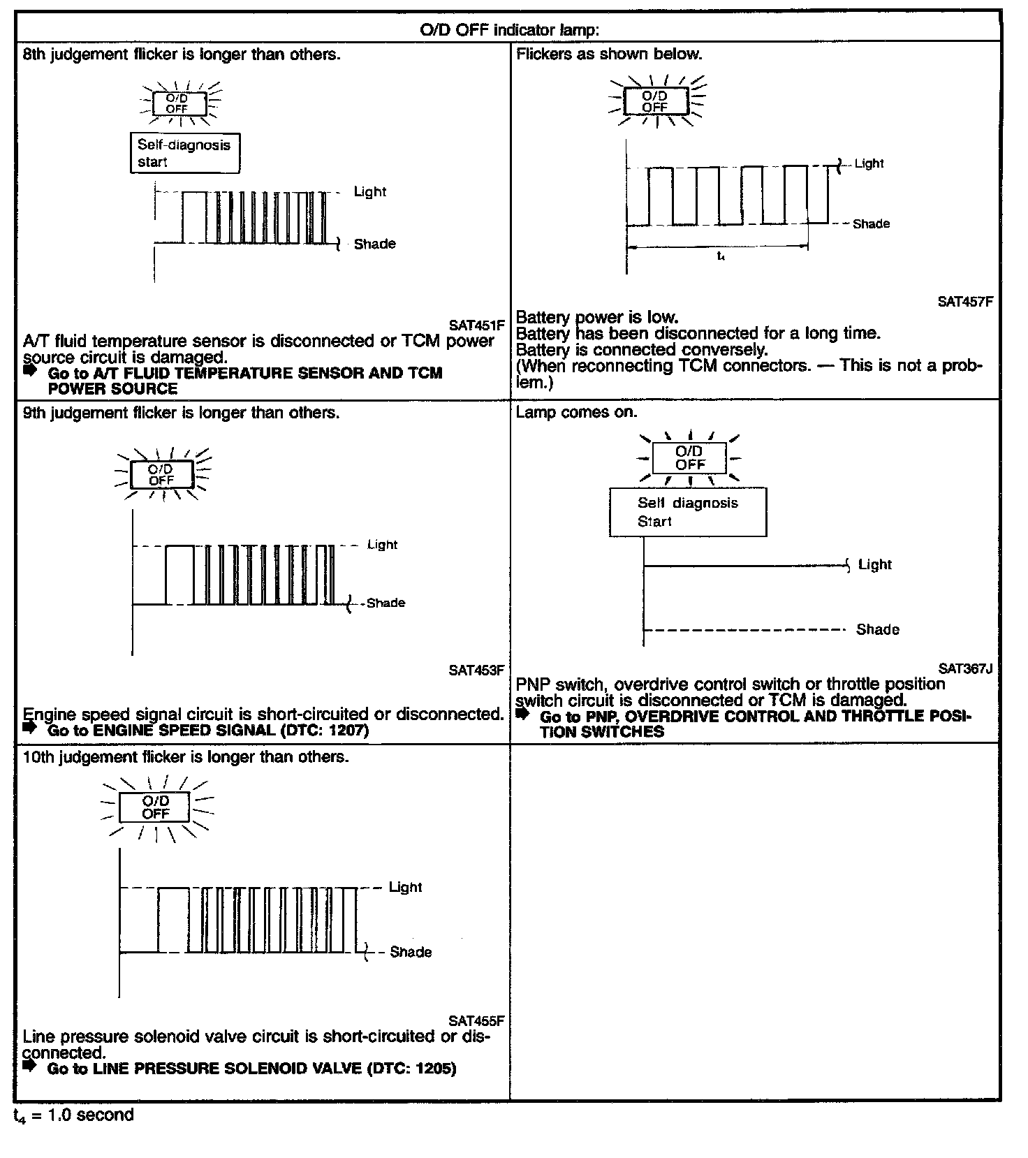 The number of blinks of the malfunction indicator lamp in the Diagnostic Test Mode II (Self-Diagnostic Results) Examples: 1101, 1102, 1103, 1104, etc. These DTCs are controlled by NISSAN.