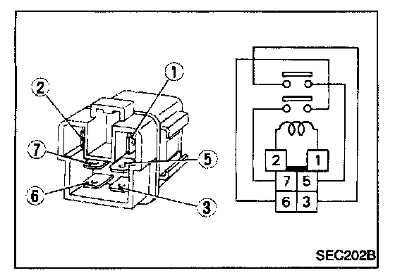 Check continuity between terminals (3) and (5), (6) and (7).