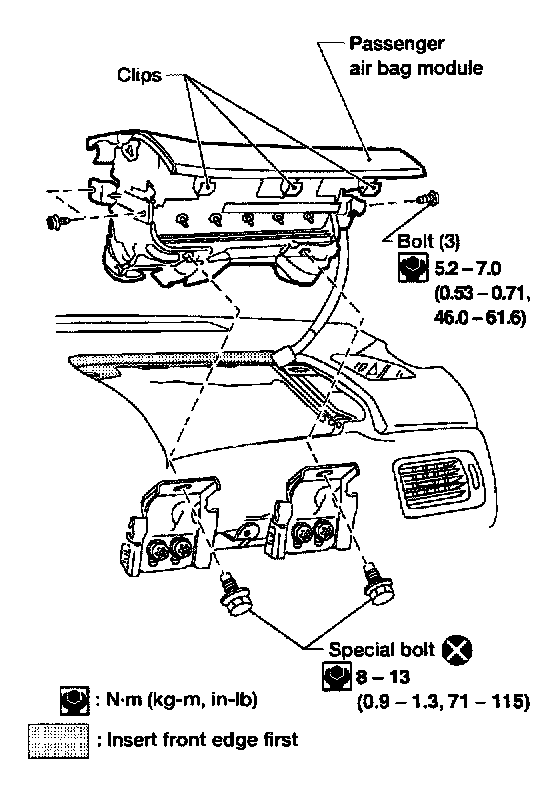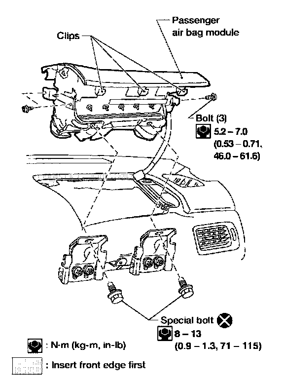 - Insert front edge of air bag module first to ease installation.