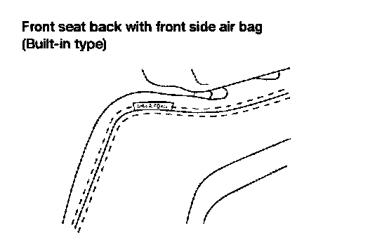 The Front side air bag is a built-in type. The front seat backs with built-in type side air bag have the labels shown in the figure.