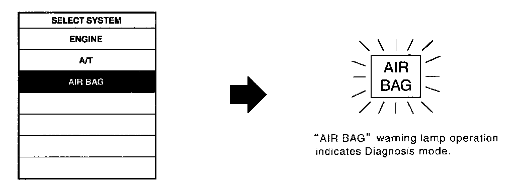 Touch "AIRBAG" on the "SELECT SYSTEM" screen. User mode automatically changes to Diagnosis mode.