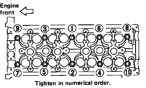 1. Tighten the cylinder head bolts in numerical order using the following procedure: