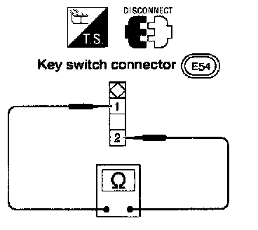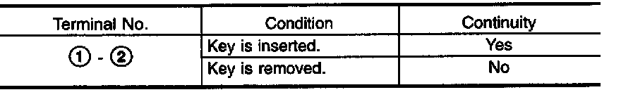 Check continuity between terminals when key is inserted in ignition key cylinder and key is removed from ignition key cylinder.