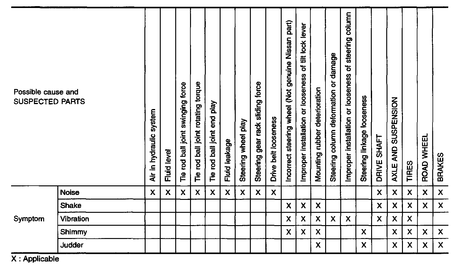 NVH Troubleshooting Chart