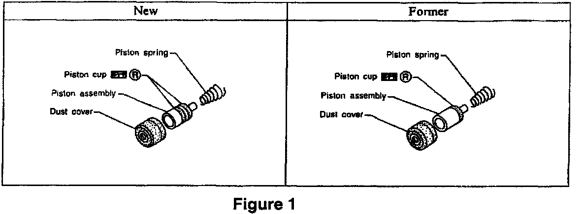 The piston cup for the clutch operating cylinder has been changed from a single cup to a dual cup. The parts are interchangeable with a piston kit (piston assembly, piston spring and dust cover), see Figure 1.