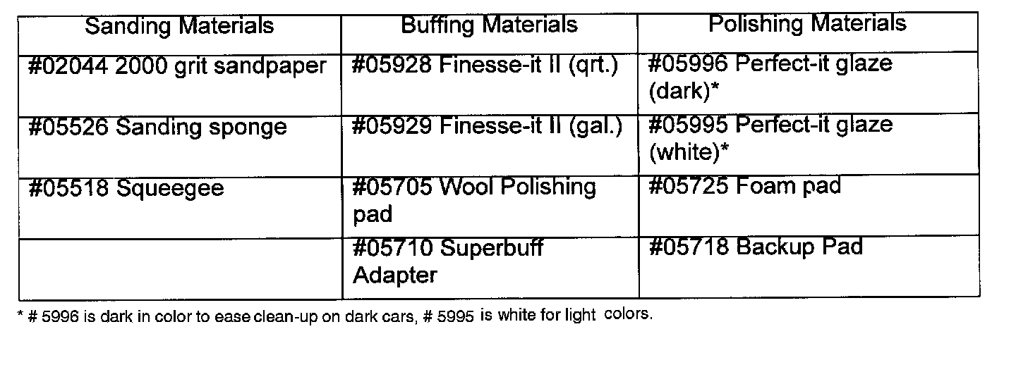 The goal of abrasive cleaning is to remove the damaged layer of color coat or clear coat (up to 0.5 mil in thickness) using the least abrasive process. The steps below demonstrate the sequence of operations to use on the test section to identify the severity of damage and the repair needed.