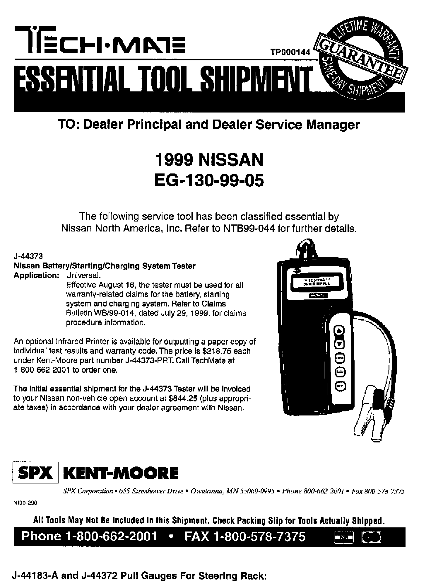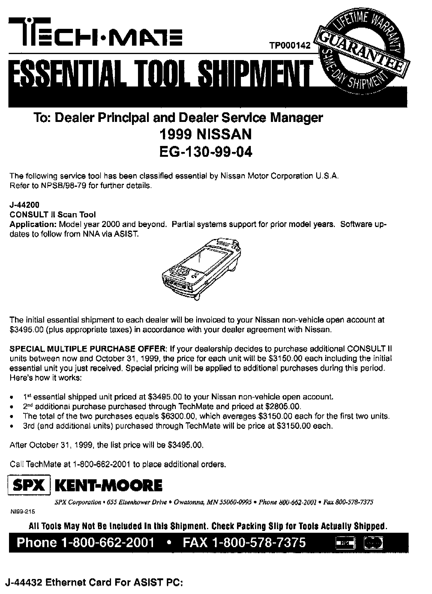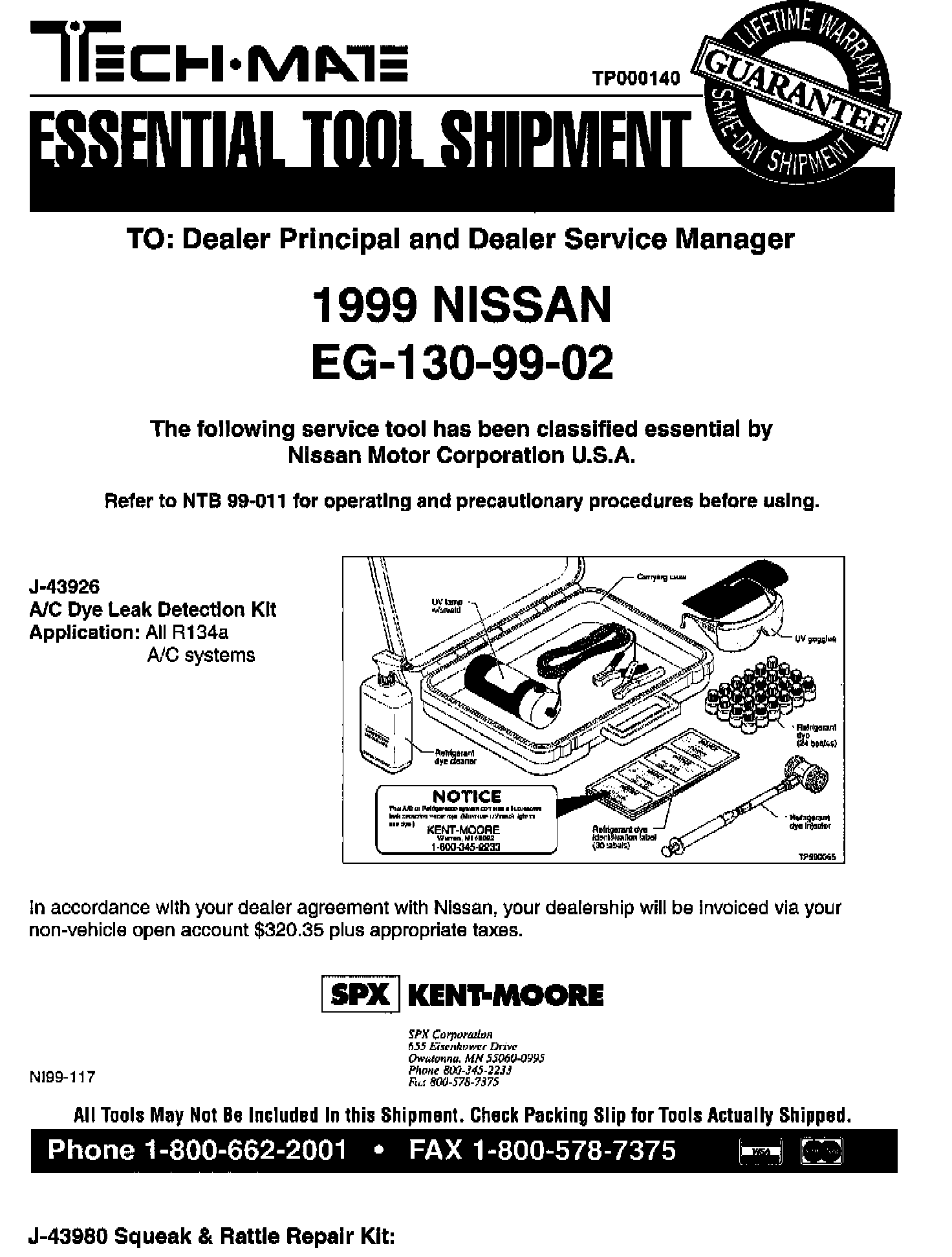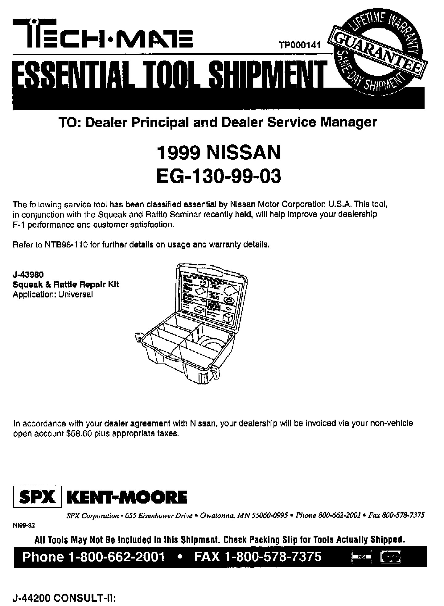 NISSAN 1999 ESSENTIAL TOOL SHIPMENT SUMMARY