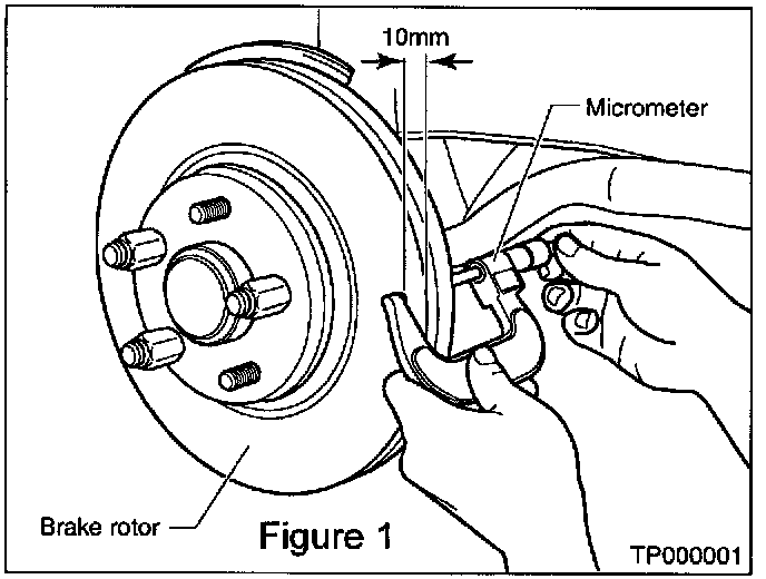 1. Measure the rotor thickness at 10 mm in from the outside diameter of the rotor to ensure the rotors can be turned (see Figure 1).