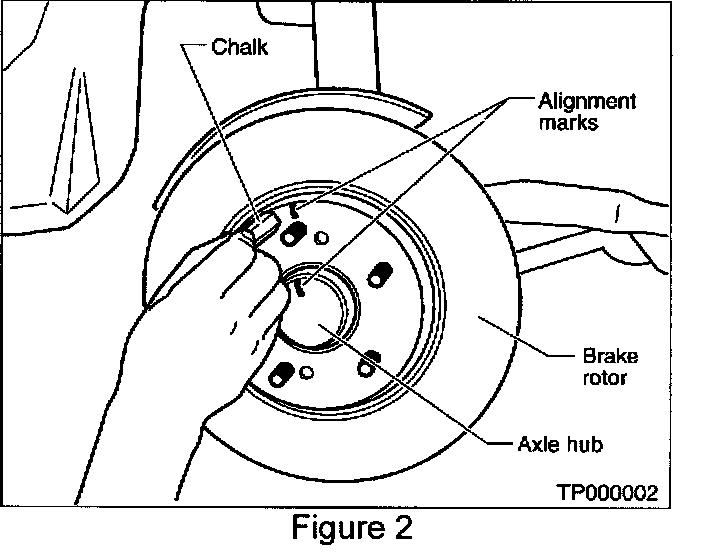 3. Put an alignment mark on the rotor and the axle to ensure the rotor remains in its original position (see Figure 2).
