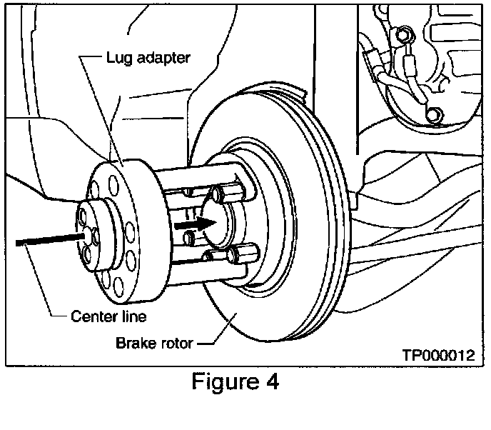 Make sure the lug adapter is centered on the brake rotor (see Figure 4).