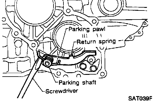3. Install parking pawl on transmission case and fix it with parking shaft.