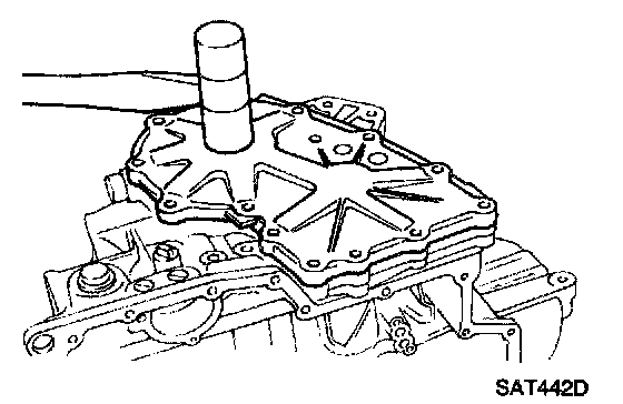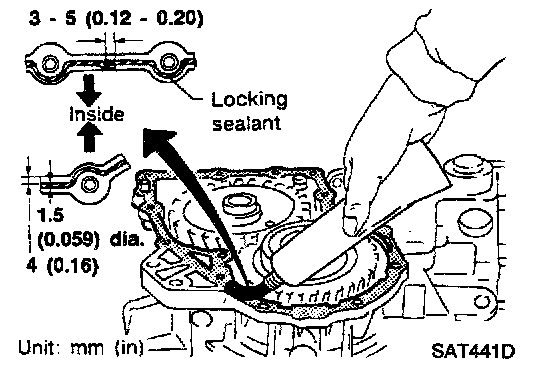 - Apply locking sealant to the mating surface of transmission case.